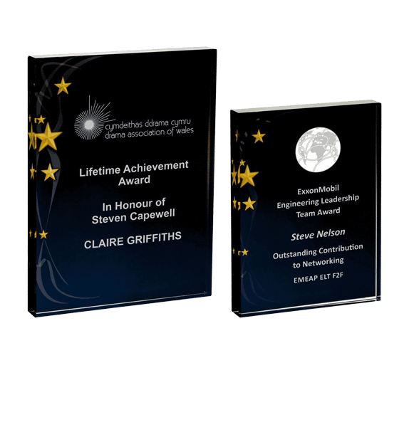OBS att det vita på bilden är exempel på lasergravyr, de guldiga stjärnorna är tryckta på produkten.