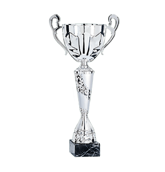 Silverfärgad pokal med matta och blanka detaljer. Pokalen finns i 4 olika storlekar. Plats för gravyrplåt på sockeln.