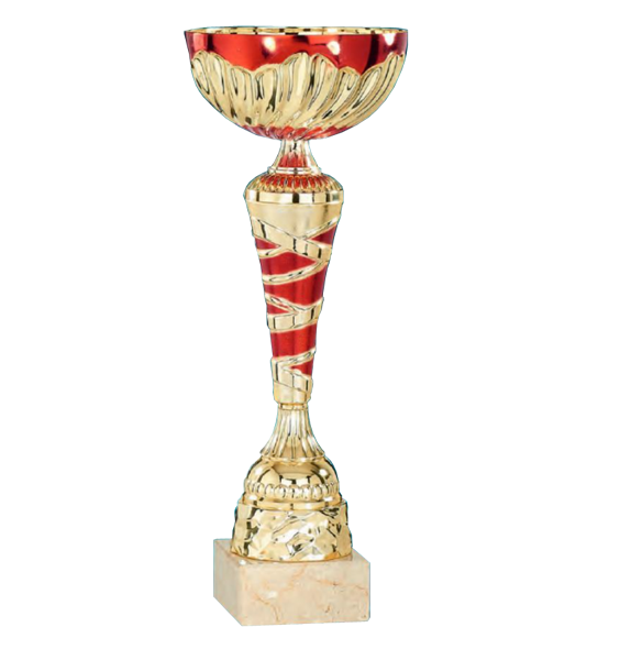 Pokal Frampton, “kroppen” guld/rödfärgad, kupa i guldvalör. Marmorsockel