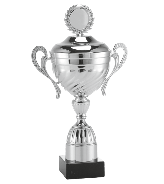 Silverpokal med fastmonterat lock, finns i 7 storlekar.
