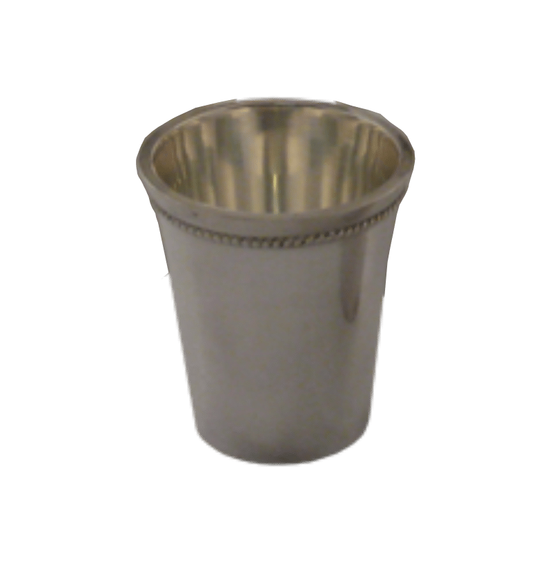 Mässingsbägare med nickelplätering, kan beställas med diamantgravyr.