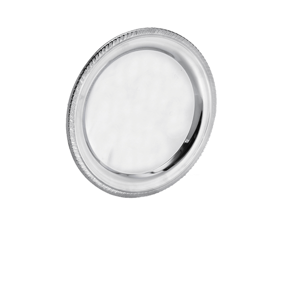 Silverfärgat fat som kan beställas med diamantgravyr.