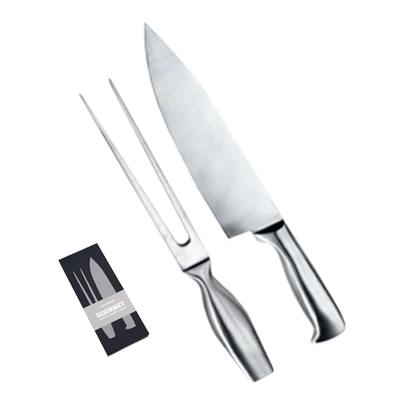 Innehåller en kniv 34cm och en gaffel 27cm.