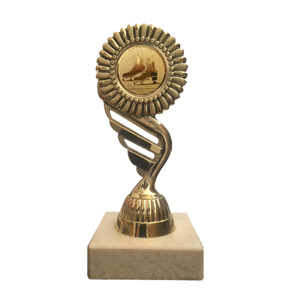 En konståkningspokal med en guldfärg. Höjd ca 150mm Går att få med svart eller vit marmorsockel