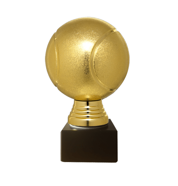 Guldstatyett av en tennisboll. Höjd ca 130mm