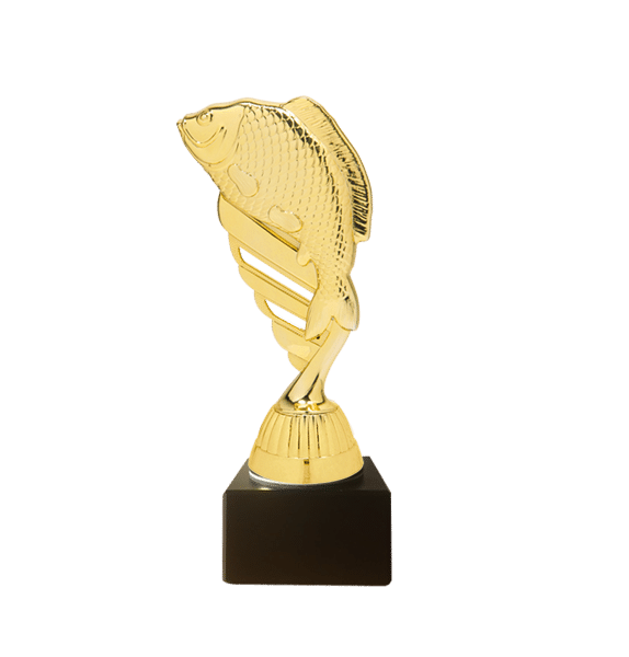 Ett fiskpris i guld. Höjd ca 165mm
