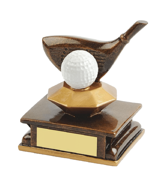 Resinstatyett i form av en driver och boll. Långt & rakt…..