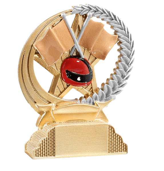Retsinstatyett av Hjälm och Flaggor, ca 125mm.