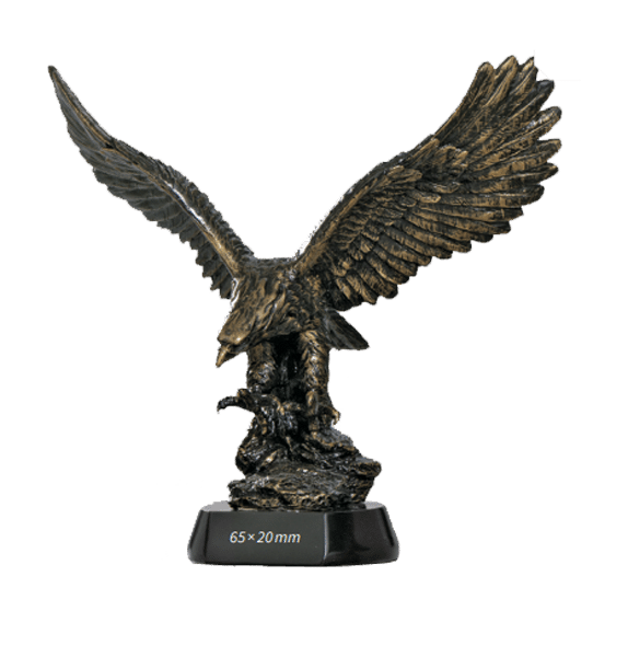 Bronsfärgad örnstatyett ca 180mm bred, 190mm hög på svart sockel