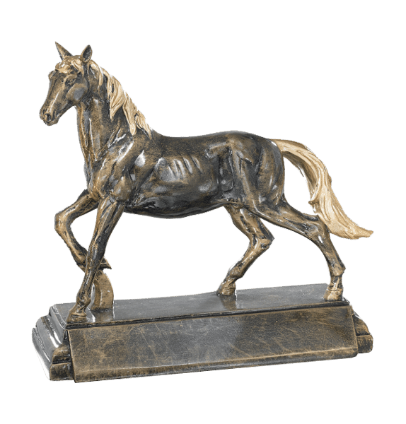 Häststatyett ca 210×210 mm. Färgsättningen är guld/brons
