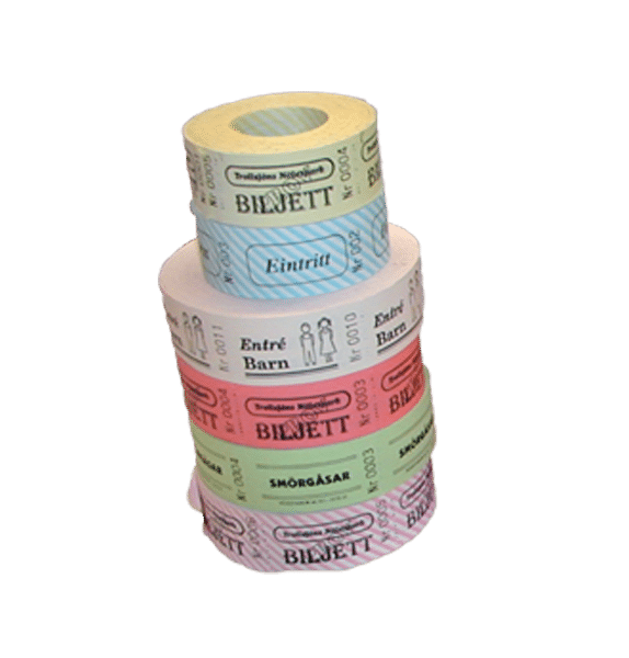 Rullbiljetter som kan användas som bl.a entrébiljett eller kaffebiljett