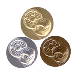 Finns i guld, silver och brons. Anpassa gärna med ett idrottsmotiv eller egen logo samt medaljband.