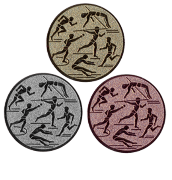 Detta är ett idrottsmotiv (25mm) i metall som kan monteras på samtliga medaljer, statyetter och pokaler som har speciell plats för idrottsmotiv.