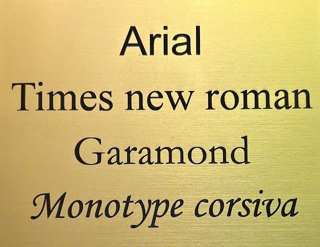 Skylten diamantgraveras och oxideras så texten blir svart.