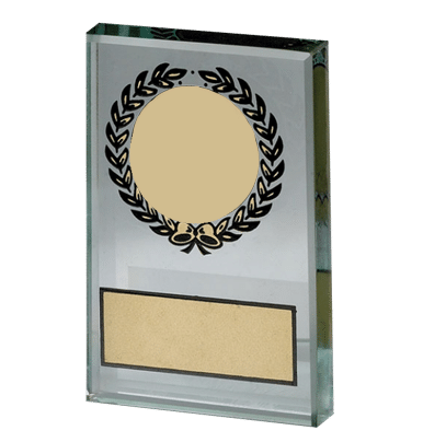 Glasplakett 50x75mm med tryckt krans.