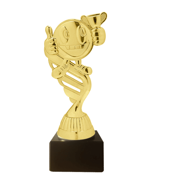 Plaststatyett med en glad gubbe samt pokal. Storleken är ca 170mm